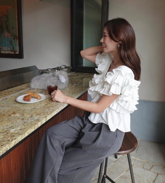 【2026年4月19日のコーデ】フリルブラウスはこの春夏で着倒したい♪