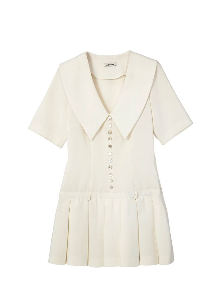 清純派なセーラー服デザインが新鮮! 足元はルーズソックス×ミュールで、大人なハズしを嗜んで。ワンピース¥107,325(SANDY LIANG/LYDIA)