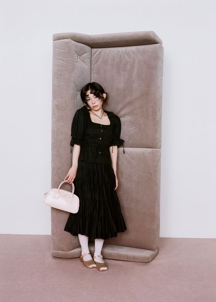 懐かしい記憶を呼び起こすようなリボンやパフスリーブを、洗練されたカッティングでモダンに昇華した26SSコレクション。宮﨑優さんが表現する、甘くてミステリアスな「現代のレディ」の肖像を紐解きます。
