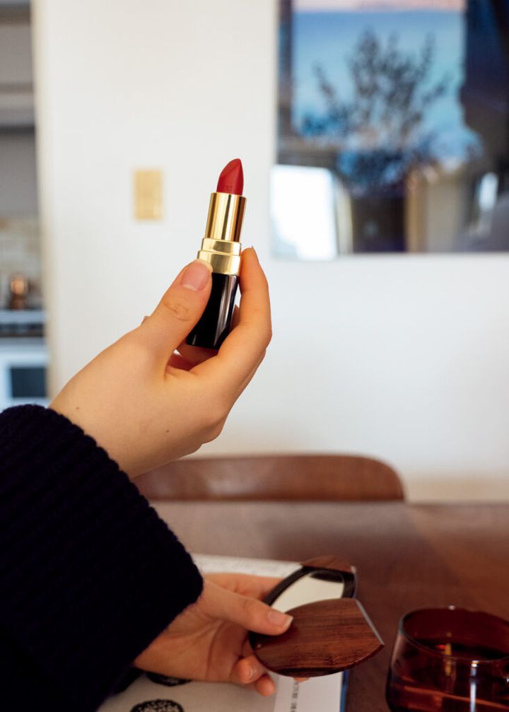 〈シャネル〉の定番リップスティック「ルージュ ココ」がリニューアル。フォーミュラには自然由来成分を80%以上配合し、滑らかで軽いつけ心地と、発色のよさ、高い保湿力を共存させた。全15色で新登場して、肌色を問わない絶妙なラインナップになったのもうれしい。写真の「#118 ニューヨーク」は、上品さと芯の強さを感じさせるウォーム レッド。¥6,490(シャネル カスタマー ケア センター 0120−525−519) カーディガン¥72,600(A.P.C./アー・ペー・セー カスタマーサービス) その他スタイリスト私物
