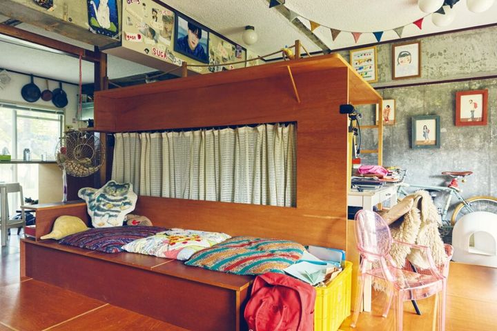 「暖かく過ごすために、あえて部屋を狭くして寝床と収納などマルチな機能を兼ね備えたボックスを利用するそうで。娘は『冬は暖かい』と言って、この空間がお気に入りです」