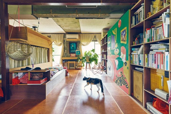 広い敷地に建てられた東京郊外にある古い団地。ある一室の扉を開けると、「物語」を愛する人のアイデンティティを感じる、創意溢れる空間が広がっていた。家主は編集者の川端麻里子さん。娘と猫3匹との暮らしだという。丸ごとリノベーションした空間には、印象的な〝ユニークな仕掛け〞が2つある。