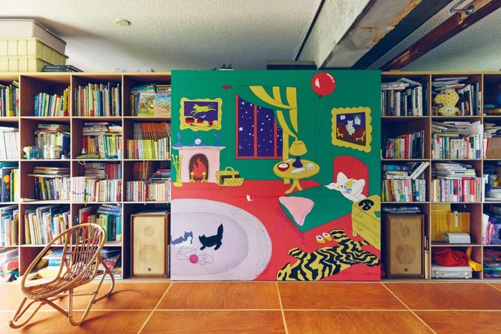 「マーガレット・ワイズ・ブラウン作の『おやすみなさい おつきさま』という絵本が昔から大好きで。友人にすまあみというウォールペインターがいて、彼女と私、それぞれの子どもたちと作中のあるシーンを模して描きました」