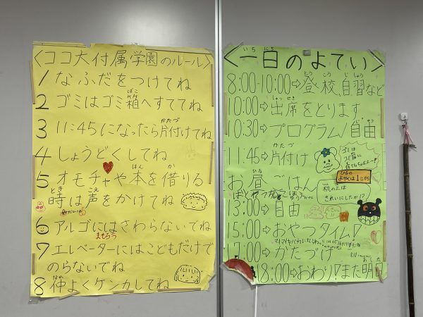 部屋の壁には一日の予定とルールが大きく貼り出されています。