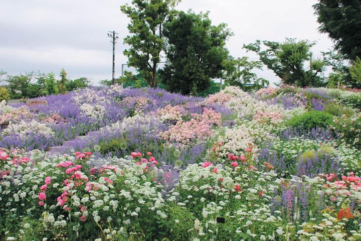 フランス・パリのバガテル公園の姉妹園として2001年にオープン。日本にいながら本格派のフランス式ガーデンを楽しめる。この4月から町営公園となり、料金が無料に。バラ園は9月で閉園予定のため、5月~7月上旬に見頃を迎える春バラは今季で見納め!