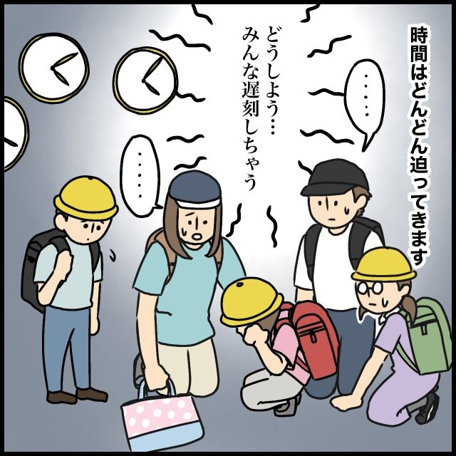 みんなで励ましてなんとか一緒に登校しようと試みましたが、泣き止まない女の子。そうこうしている間に時間はどんどん迫ってきて、みんなが遅刻してしまうと班長さんに焦りが出てきました。
