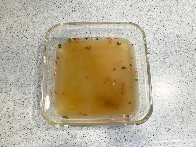 一口飲んでみると…エビや鶏肉など五目の具材による豊かな風味が、口いっぱいに広がるではありませんか!