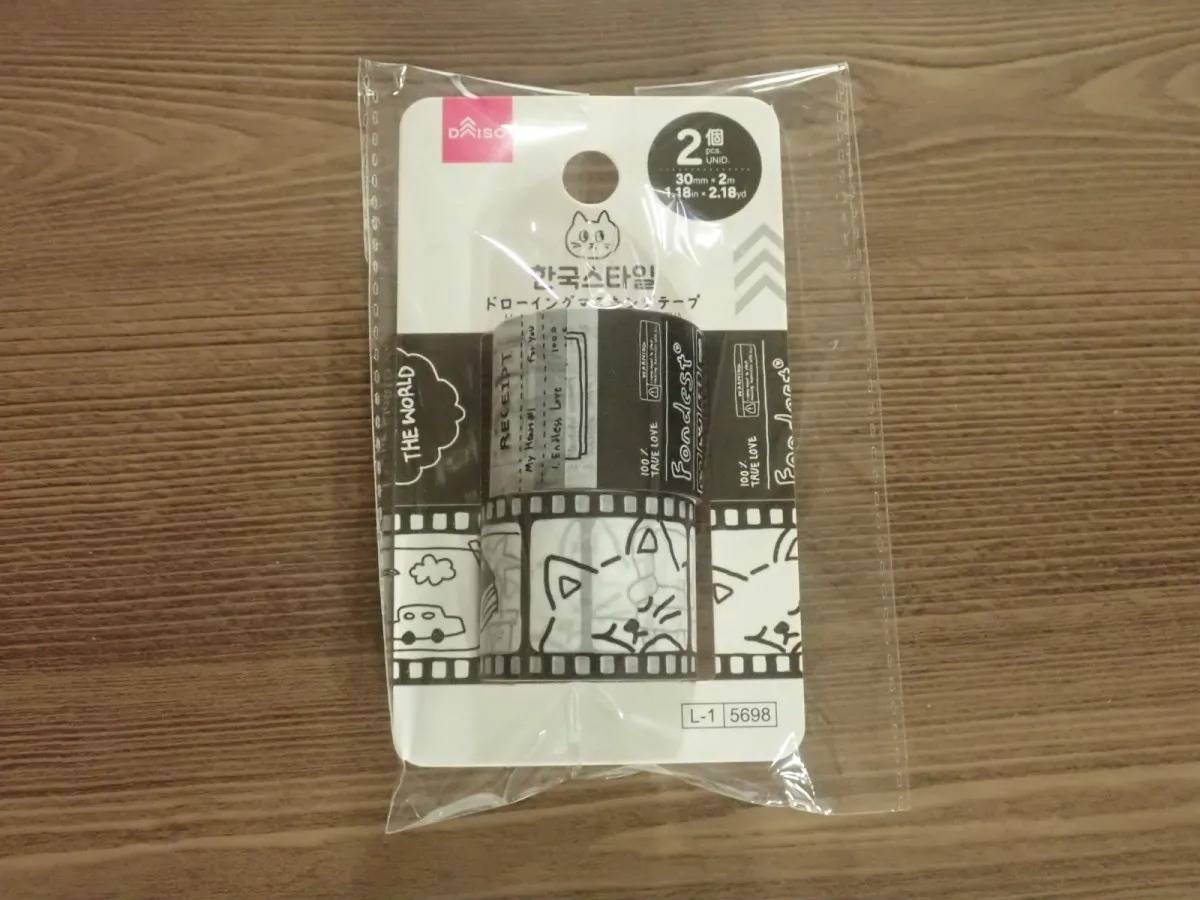 【ダイソー】おすすめ猫グッズ②マスキングテープ(韓国スタイルドローイング、2個、ネコ)