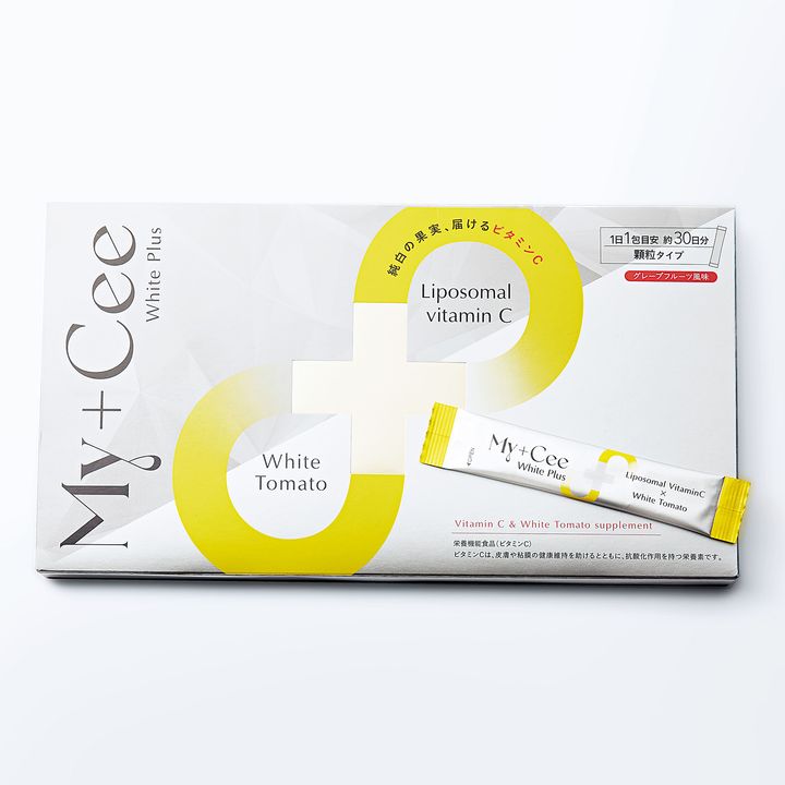 希少果実のホワイトトマトの成分と、超浸透型ビタミンであるリポソームビタミンC、4つのフルーツ美容成分を配合。(私物)