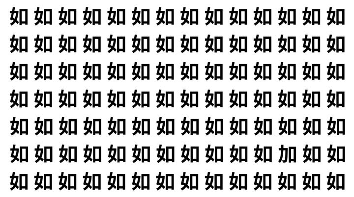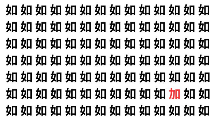 たくさんの「如」の中に、よく似た別の漢字が1文字だけ隠れています。
