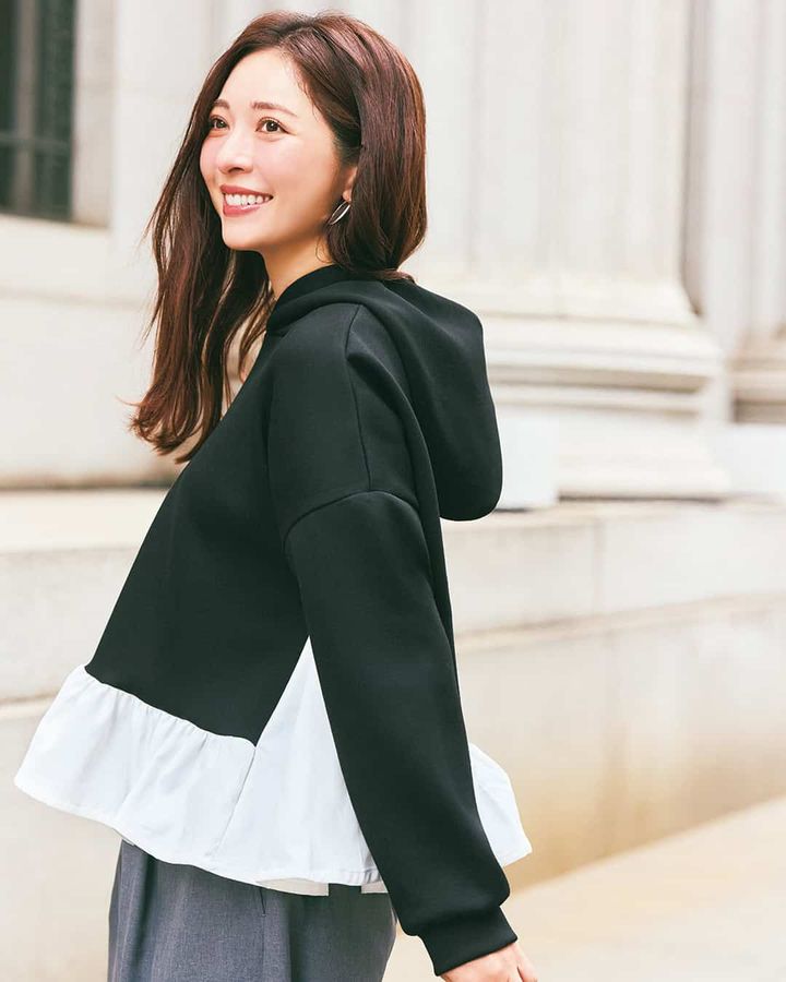 サイドにスリットが入り、実際にシャツをレイヤードしているように見える華やかパーカ。上品見えする薄手のポンチ素材はカジュアルになりすぎず、コンサバ派も満足の1枚です。シワになりにくい素材を使用しているため、いつでもきれいな状態で着用できるのが魅力。自宅で手軽に洗濯できるので、忙しい毎日にもぴったりです。カジュアルな日常使いから、友人とのお出かけまで幅広く活躍する一枚。