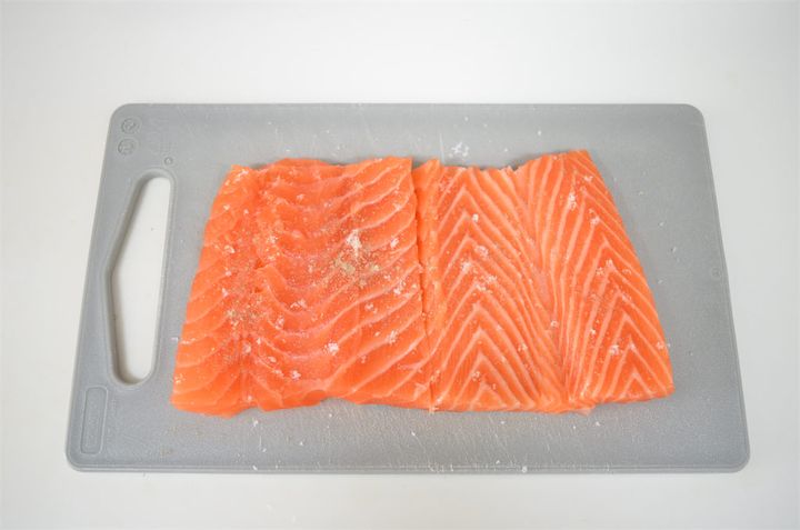 1. 鮭を観音開きにして、塩・こしょうを振る。