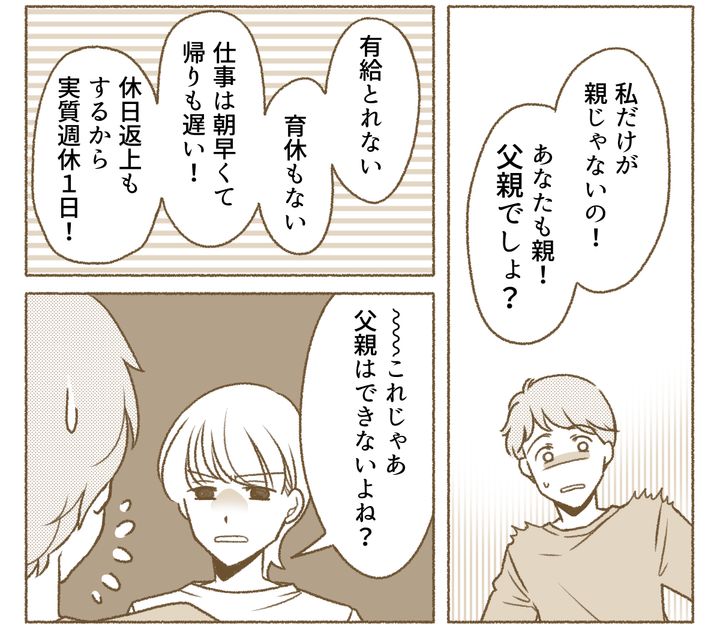 私が「母」として今の職場に復帰ができないのなら、夫も「父」として今の会社を続けることが難しいと思うのです。