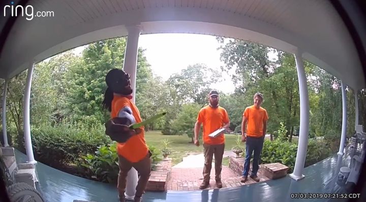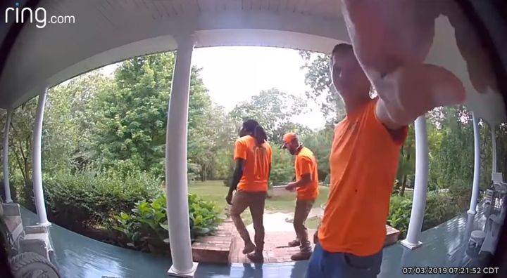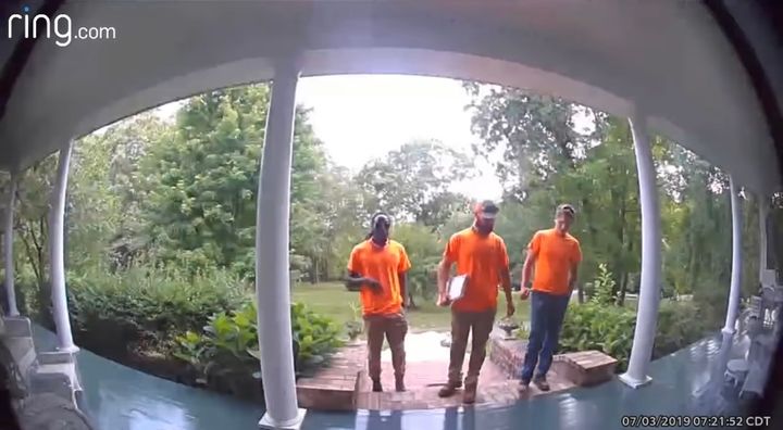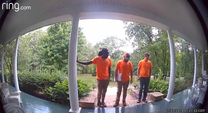 まるでコント!玄関前の床が「ペンキ塗りたて」だと勘違いした3人組の行動をインターホンカメラがキャッチ!【アメリカ・動画】