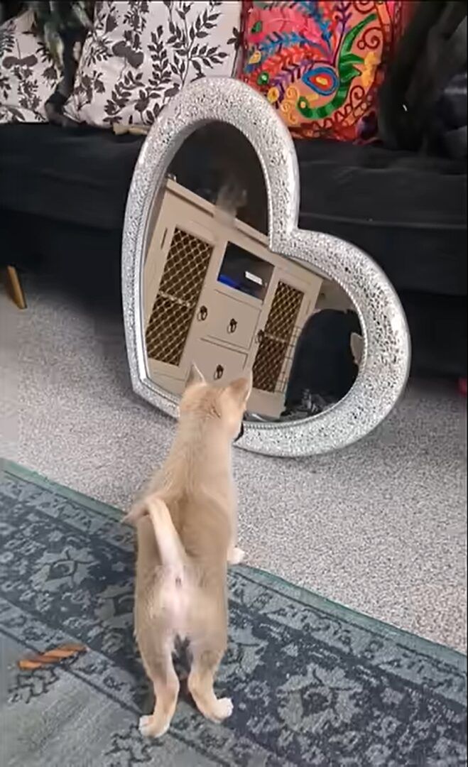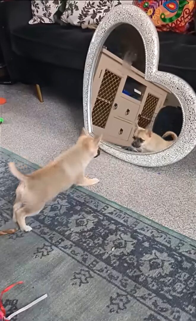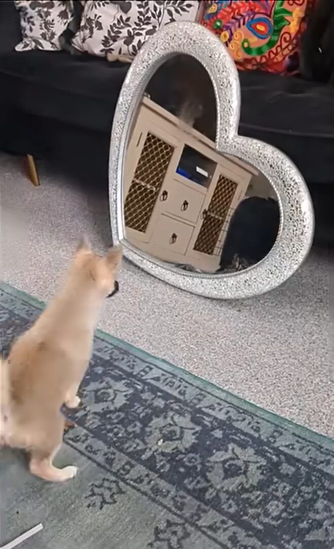 初めて鏡に写る自分の姿を見た子犬。 その時のリアクションを、飼い主さんはしっかりカメラに収めていました!