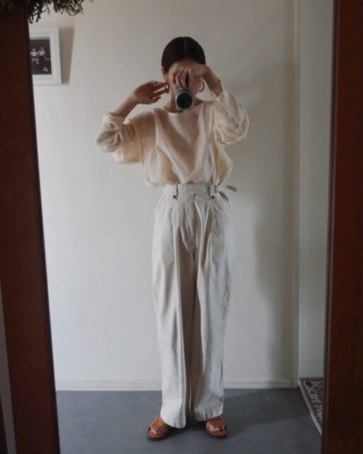 シアープルオーバーは「ワイドパンツ」と相性バツグン。ボリューミーなパンツに合わせることで、くたっとした生地のシアープルオーバーが寂しく見えない上に全身のバランスが整います。サマになるシンプルコーデが即完成。
