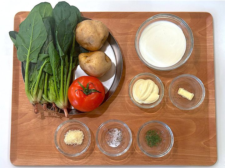 材料もシンプルで作り方も簡単だけど、特別感の漂う「ホウレンソウとジャガイモのチーズ焼き」。
