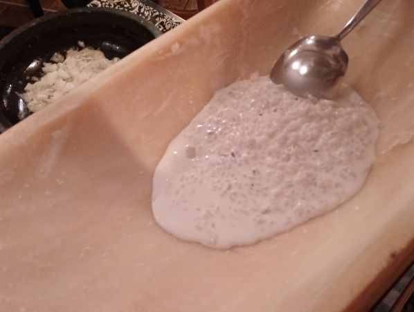 ②次に少しずつチーズを溶かしながら、調理が始まります。