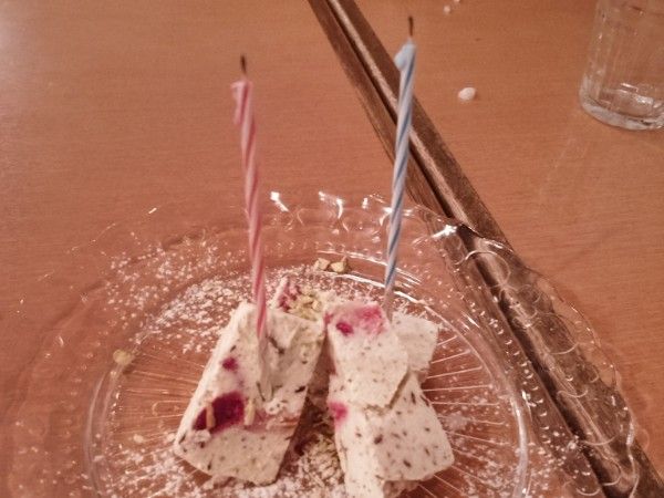 お誕生日の方には、『アンジェロ&ミカエル薬院』からデザートのサービスがあります。 "ピスタチオとベリーのカッサータ~マスカルポーネ"チーズのアイスケーキ~"をいただきました。 ひんやり、さわやかなチーズをデザートで、いろんな味のチーズを最後まで存分に味わえました。
