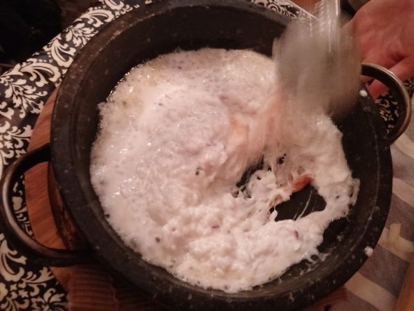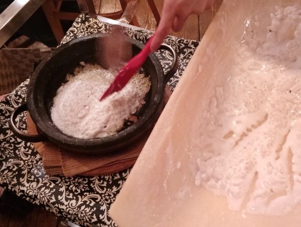 ③石焼の小鍋に移されます。