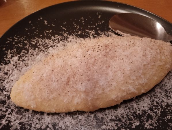いただくまで、だしバターにピンとこなかったのですが、いただいてみると…なるほど…!という感じでオムレツなのに和を感じました。ほどよくバターの香りをまとった、とろとろっとした感じが絶妙のオムレツの上には、ひらひらした生パルメザンチーズがたくさんON!テンションが上がりました。