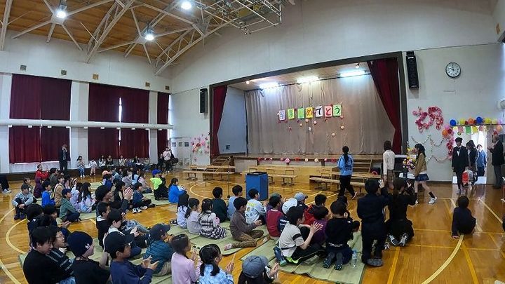 「卒業を祝う会」の直後、体育館をのぞいてみると、4月の「入学を祝う会」に向けた準備が始まっていました。