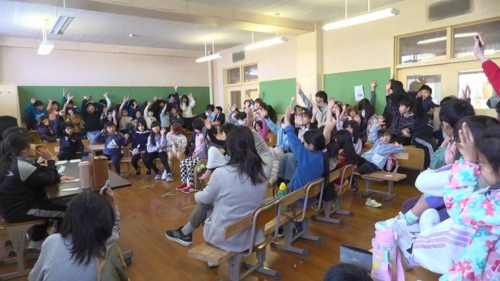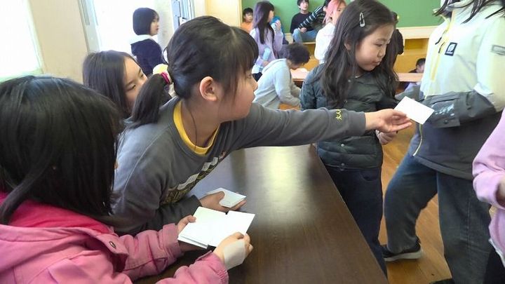 積極的に発言をしていた男子児童。入学したときは恐竜に夢中な物静かな子どもだったといいます。卒業生に「中学がんばれ」とメッセージを書いたといいます。