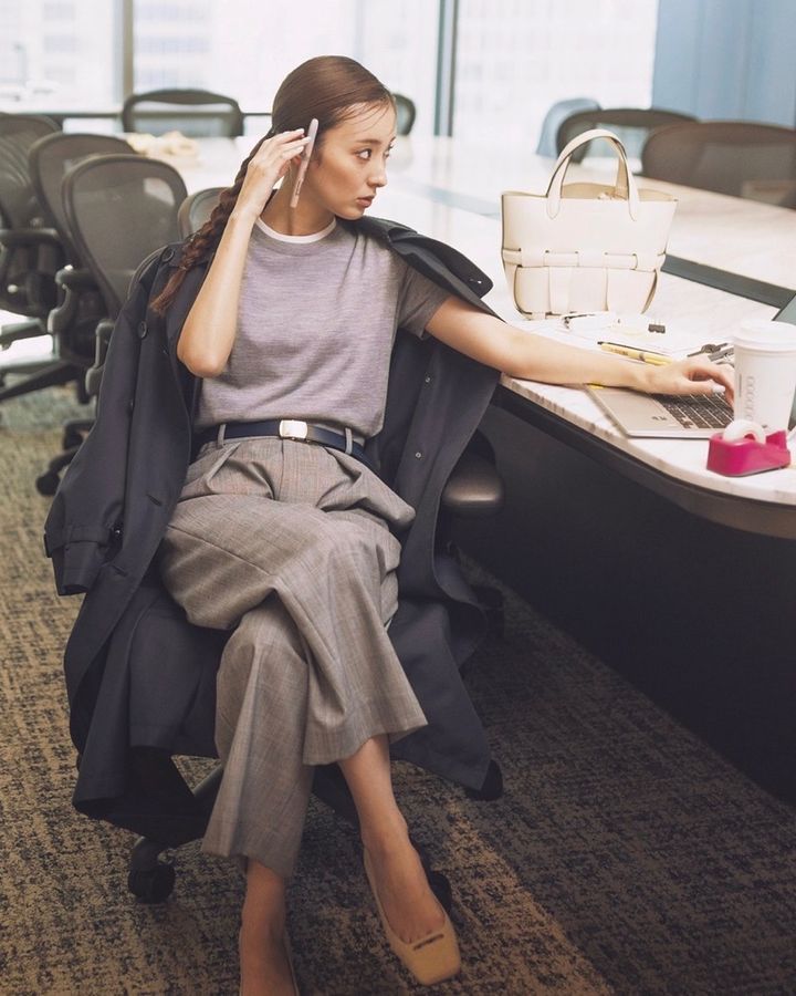 4月20日(月)、悪目立ちしたくない日は、コーデをカラーレスにまとめるのが正解。装飾のないプレーンなグレーなら、きれいめをキープしながら落ち着いた印象になります。ワントーンののっぺり見えを防ぐには、インナーの白Tシャツをちらりと覗かせたり、ベルトでウエストマークを効かせるのがポイント。手持ちのシンプルアイテムでも、さりげないメリハリが生まれて、洗練された通勤スタイルに仕上がります。