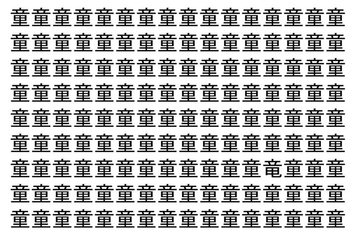 【脳トレ】「童」の中に紛れて1つ違う文字がある!?あなたは何秒で探し出せるかな??【違う文字を探せ!】