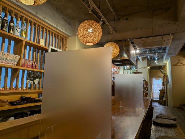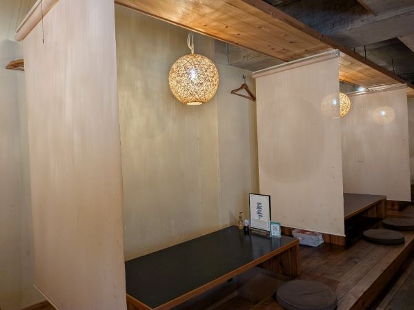 店内は竹を使った照明と、木造りの温かみがある空間。半個室になっているので、ゆったりと過ごすことができますよ。