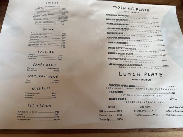 モーニングのメニューは色々。どのメニューも人気とのことで、LOCASA BREAKFAST にしました。