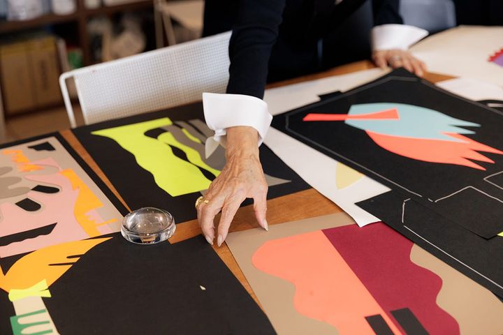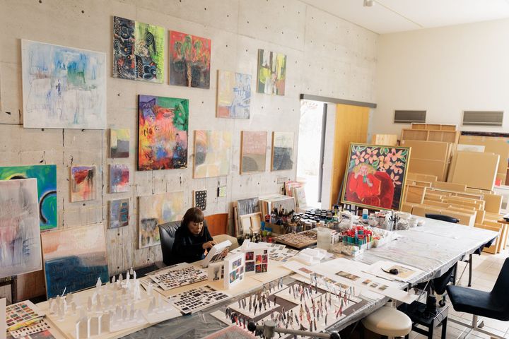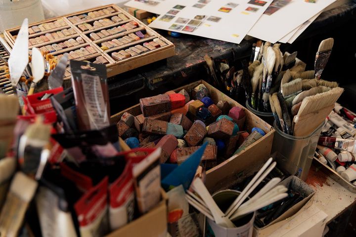 コシノのアトリエにて。愛用するパステルをはじめとする画材など。 Hearst Owned