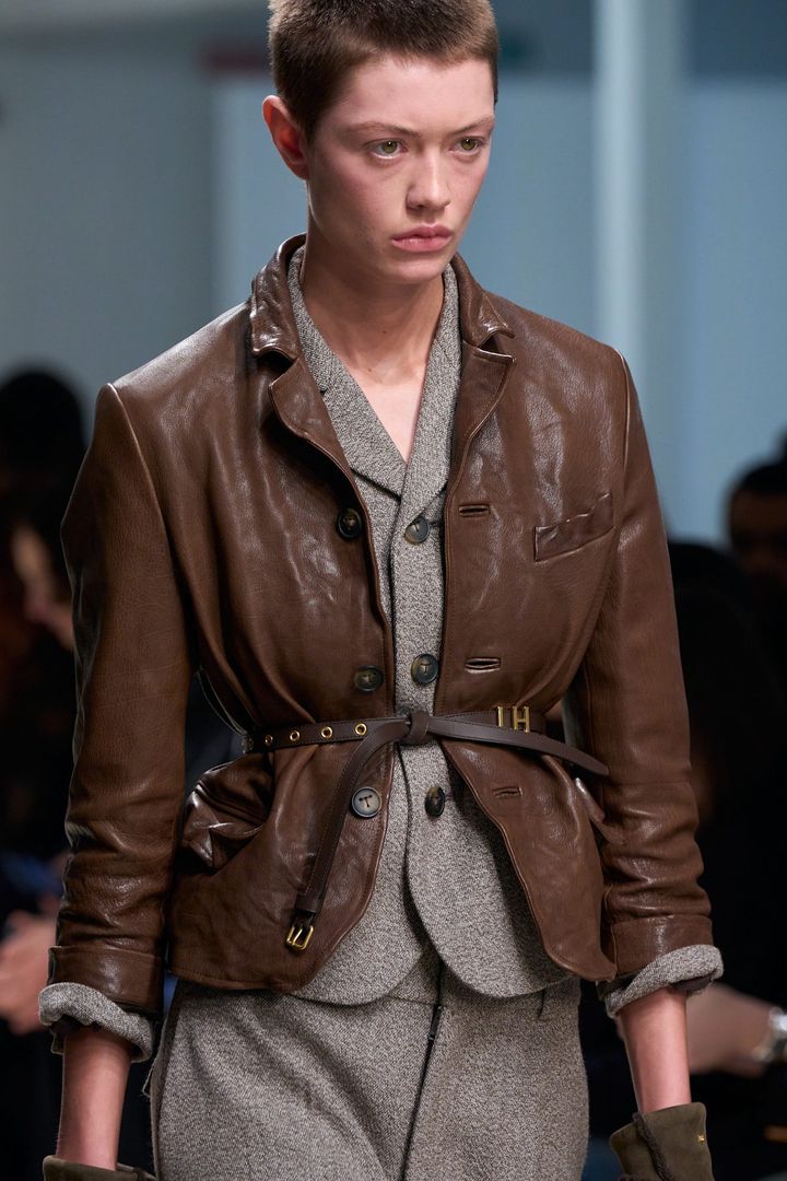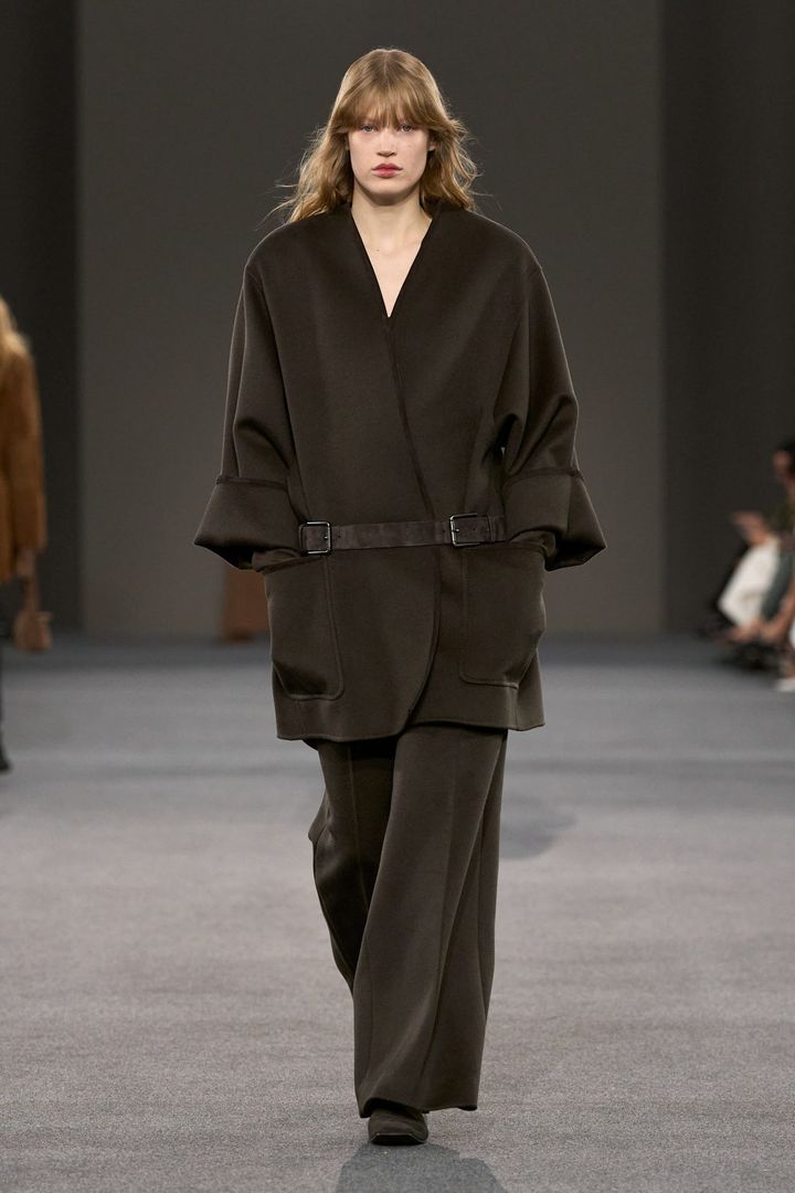 ブランドの核であるコートは、カシミヤやウール、レザーといった上質な素材によってその存在感をさらに強める。カラーパレットはブラウン、グレー、ブラック、カーキ、ヴァーミリオンに絞られ、実用性と洗練を両立するアクセサリーとともに、控えめでありながら揺るぎないラグジュアリーを示した。