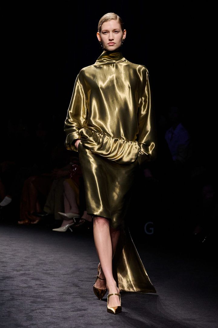 足元では、1954年のアーカイブを参照したポインテッドトゥのスティレットやスリングバックが登場し、ブランドの歴史をシャープに再解釈する。また、ソールが足を包み込む“シェルソール”の発想を応用したサンダルなど、伝統技術と現代的なフォルムが融合。アクセサリーでは、“ガンチーニプレート”を留め具に採用した、スリムで洗練された新型バッグが3サイズで登場し、イーストウエスト型の“ハグ”バッグは、新たなカラーバリエーションで展開。