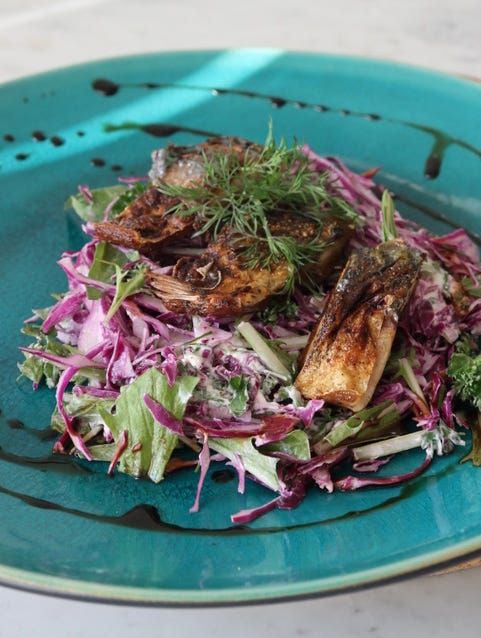 クミンとケイジャンスパイスをまとわせたさばを、香ばしくソテーに。さっぱりとしたサワークリームのコールスローを付け合わせにすれば、サラダ感覚でペロリと味わえる。
