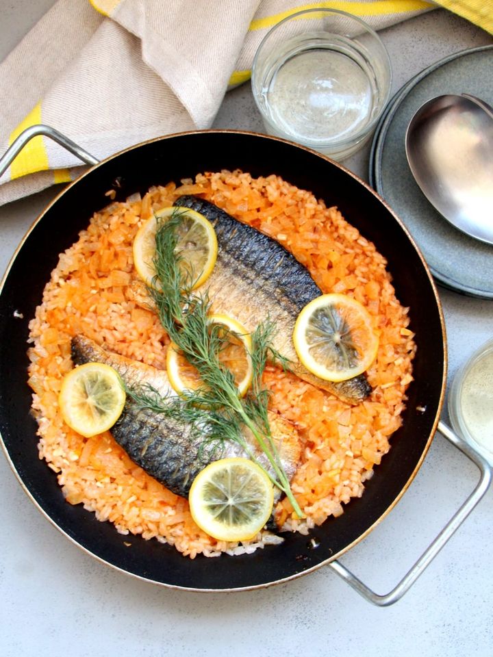 塩さばの風味がしっかりと染み込んだ炊き込みご飯。トマトベースのご飯に塩さばのうま味が重なり、奥行きのある味わいに。レモンとディルを添えて、見た目も味も爽やかな印象に仕上げている。