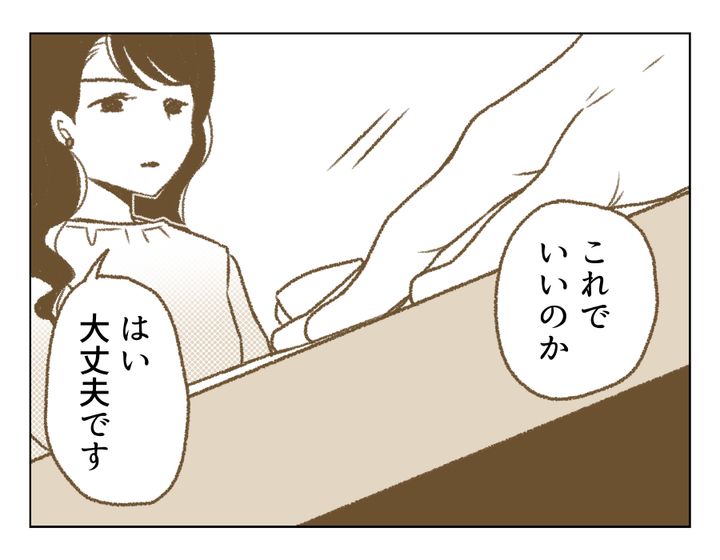 ヒデキさんはアカリさんからの絶縁宣言を受け入れました。そして相変わらず何も言わないミサトさん。本当にいいんですか? 娘と二度と会えなくなってしまうかもなんですよ? でもきっとミサトさんは、そんなことを言われたとしてもどこか他人事で済ませてしまうのでしょう。アカリさんのことを「冷たい人間」だと言い切るヒデキさん。どっちが? という突っ込みは今は置いておいて、アカリさんは最後に両親に伝えたいことはあるのでしょうか?