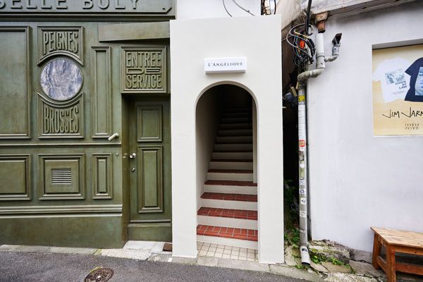 2階に位置するショップはアーチ形のエントランスが目印。大きな窓から陽光が射し込む、伸びやかな空間です。1階はフランス発フレグランス「オフィシーヌ ユニヴェルセル ビュリー(OFFICINE UNIVERSELLE BULY)」のショップで、パリの街を思わせるたたずまいです。