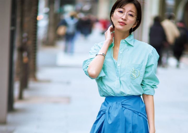 岡田紗絵 シャツ×腰巻き風パンツ
