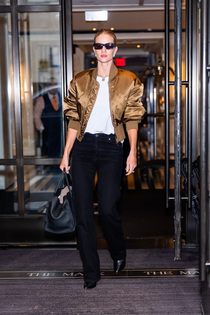 クリーンな着こなしが得意なロージーは、ミリタリーライクなMA-1を、インディゴデニム×白Tの清潔感で都会的にシフト。ジュエリーはMA-1の色に合わせてゴールドを選びたくなるところだけれど、凛としたシルバージュエリーを合わせることで、どこまでも媚びないルックに仕上げるのがロージー流。