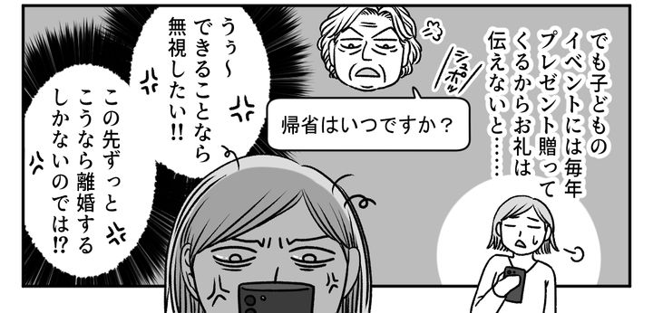 帰省するたびに嫁いびりのような嫌味を浴びせられ、ひどい仕打ちのオンパレードなのです。