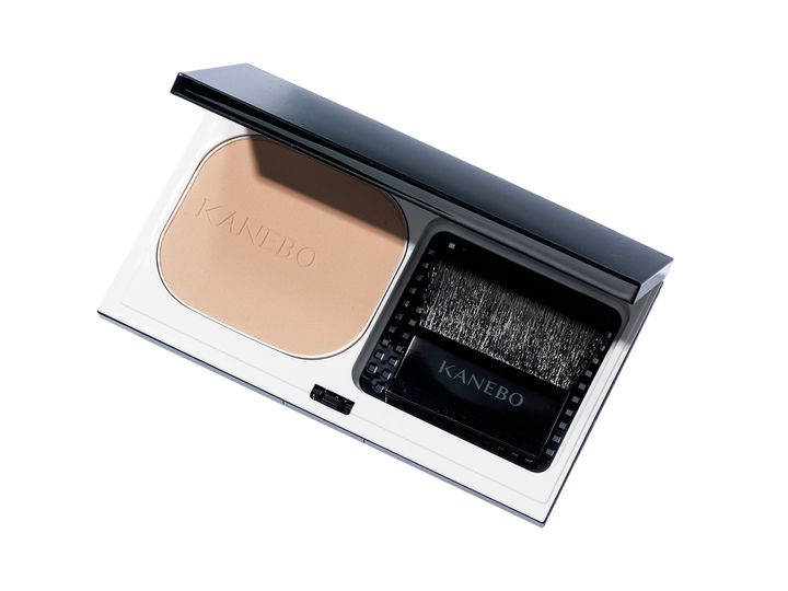パウダーなのに粉っぽく乾燥せず肌に溶け込むようなツヤと軽さ。今までのパウダリーの常識を変えるような、誰もが使いやすいファンデ。別売りのブラシで均一に薄くつけられます。それだけでもOKですが、スポンジでポンポン叩いてさらに密着させるとモチもアップ。合わせる下地はツヤがあってトーンアップできるピンクを。光を集めるベージュトーンのメイクを合わせて、品のあるセミマット肌をまとめました。