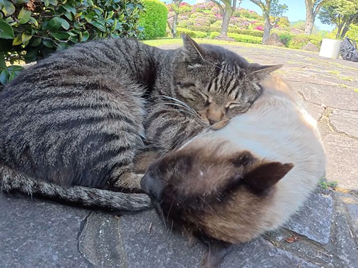 キジトラ猫さんがシャム猫さんを