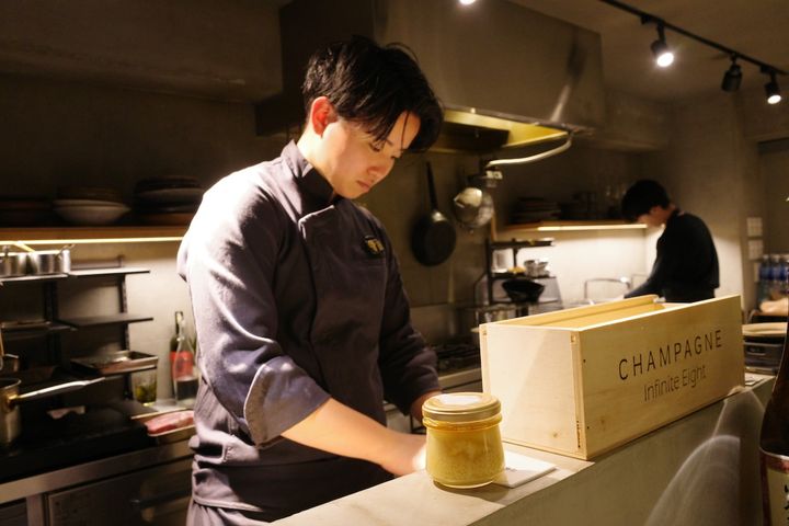 現在ここでタクトを振るうのは、2000年生まれの天間拓海シェフ。新富町の名店「coulis」で培った自由な発想と、実家の畑で土に触れてきた経験を武器に、25歳の感性を皿の上に爆発させている。