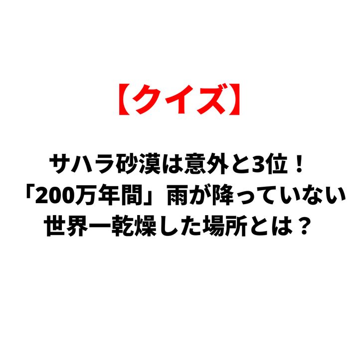 【クイズ】サハラ砂漠は意外と3位!「200万年間」雨が降っていない世界一乾燥した場所とは?