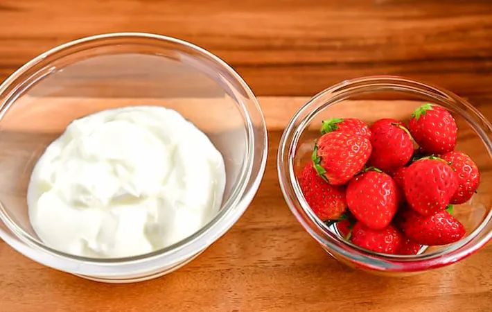 ヨーグルトは善玉菌を含む発酵食品で、イチゴは善玉菌のエサになる食物繊維を含んでいます。
