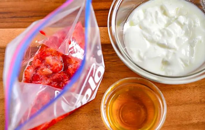 材料3つの『イチゴのヨーグルトアイス』なら、特別な道具は不要です。火も包丁も使わず、ジッパー袋で簡単にできる作り方を紹介します!