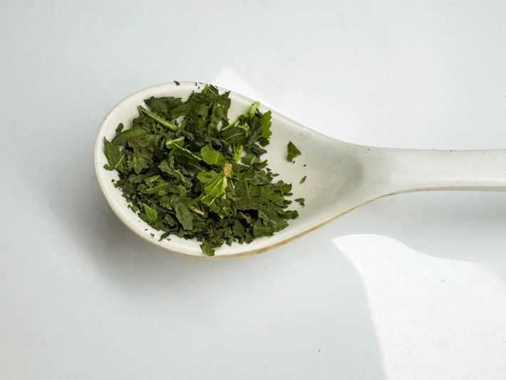 作ったドライ大葉を使う時は、スプーンですくうのがおすすめ。