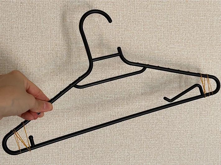 滑るのが心配な服を干す際は、ハンガーの両端に輪ゴムを巻きつけてください。