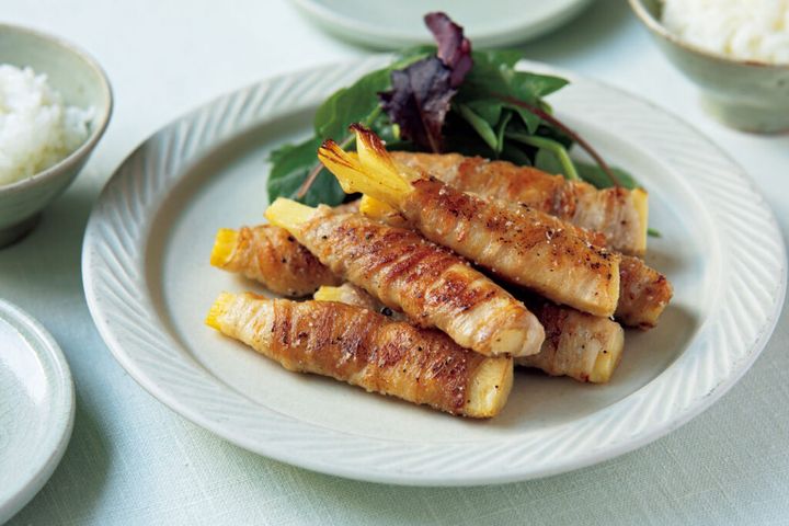 3. 旬の筍1本で簡単!豚バラの脂がうまい『たけのこの肉巻き焼き』